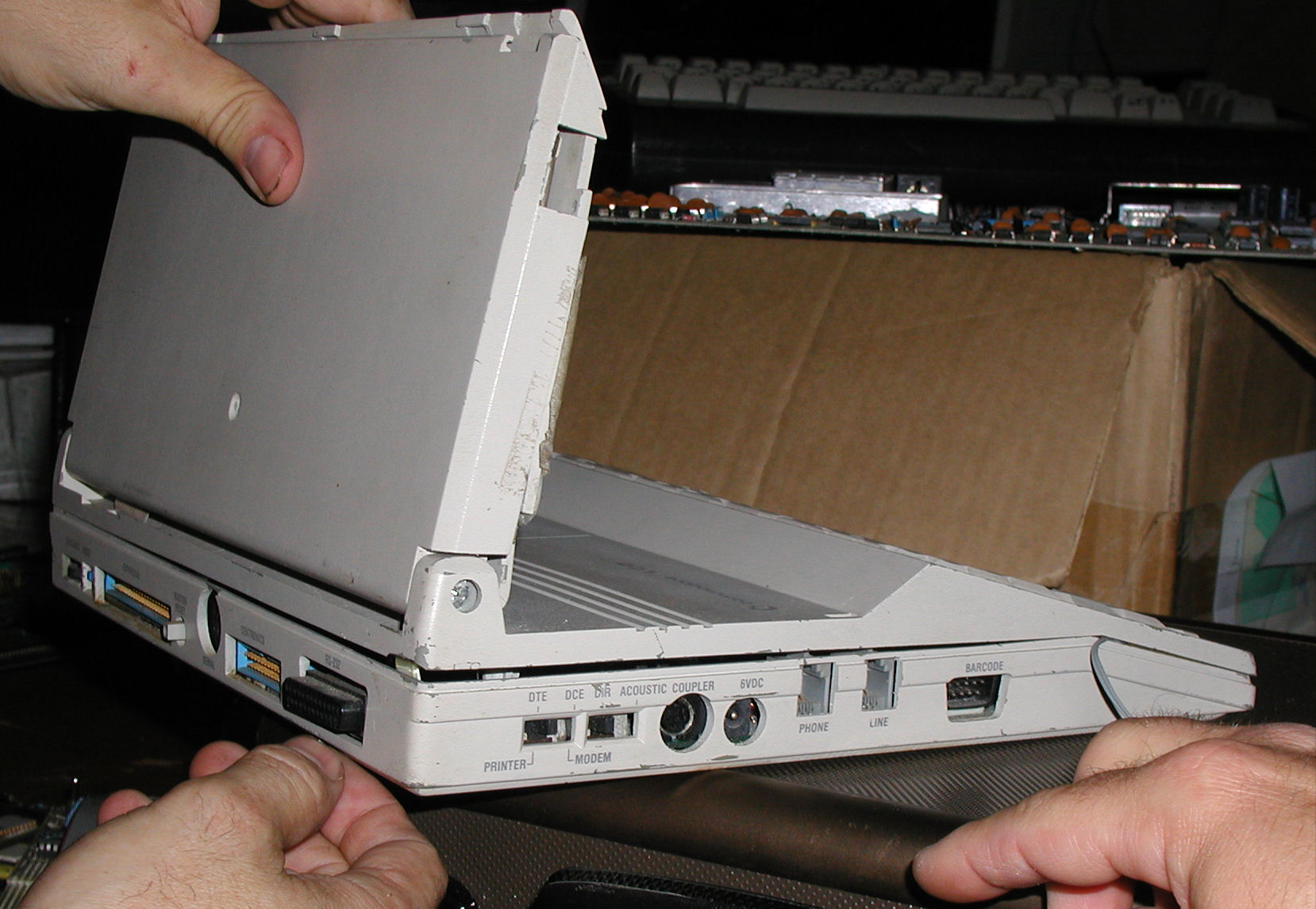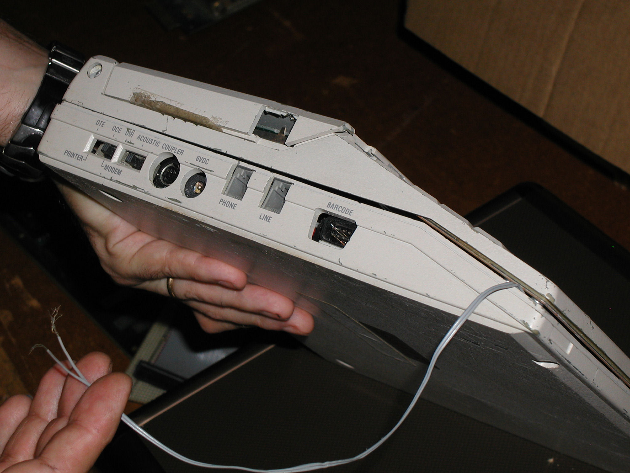 On the Work Bench - Jun/July 2007These are some of the computers and things that I am currently working on, or have recently picked up. Check my Vintage Computer Blog for updates, or post your questions.Lobo MAX 80 ![]() Click Image for larger version When you first power up a MAX 80, it responds by sending out a short beep every few seconds. That's the system telling you it needs a boot disk. If you plug the computer into a monitor, you'll only see a bunch of garbled characters...this is normal although not necessarily enough to inspire confidence when you have no boot disk to test with. And for two years, that's as far as I could get. I had been attempting to boot the system with a disk I found labeled "MAX-80 BIOS" on a Lobo twin 8" disk drive, but I had no idea if the disk was a system disk or just plain bad. I did not have a lot of confidence in the drive either. Every once in a while I would pull the system off the shelf, hook up a new combination of cables or drives or disks to see if I could make progress. No luck. ![]() "LDOS 5.1.3 v. MAX513" Click Image for larger version The big breakthrough came when I finally acquired another Lobo MAX 80, this time with some diskettes. Taking a known-working 5 1/4" Percom disk drive and the disks from the new Max 80, I was able to boot the LDOS 5.1 disk pictured above. I could then check file directories, etc. I was able to locate the program file needed to load Lazy Writer v 3.4. Unfortunately the Lobo CP/M disk that came with the system did not boot. I was also able to duplicate the process on my original MAX 80, so now I have two working units. Comments? Exatron Stringy Floppy ![]() Click Image for larger version The Exatron Stingy Floppy was introduced in April 1979 at the Computer Faire in San Francisco USA. According to the original order form (in my possession), a person could purchase a Stringy Floppy drive for either the a TRS 80, SWTPc or S-100 system. No SF was ever made for an S-100 (I assume equipped with a Z-80 processor), but there were some SWTPc 6800 users according to their newsletter. To date none have turned up that I know of making this a very rare item if you can find one. At the time the SF offered an improvement over cassette storage, but reliability was a problem and the drives met only limited popularity. Eventually diskette drives became less expensive and both the cassette and SF fell out of favor. The Stringy Floppy Wafers are 2 11/16" x 1 9/16" and they function similar to that of cassettes, except that they're on a continuous loop, no rewinding is needed. ![]() Snapshot of the initialization process on a TRS 80 Model 1