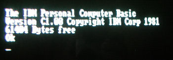 IBM PC BASIC C1.00 Boot Screen using CGA display.