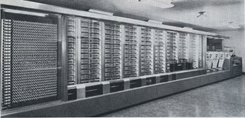 ".. Mark I and ENIAC were both "war babies." Army Ordnance, trying to supply complete ballistic data on new weapons to Army field commanders, had pricked up its ears when John W. Mauchly, then an assistant professor on the staff of the Moore School, and now an executive of Remington Rand's "Univac" division, had suggested an electronic calculator as a possible solution; Ordnance funds sponsored the construction of ENIAC. Mark I, designed by Harvard's Howard Aiken and built by his staff in cooperation with International Business Machines Corporation, was fostered by the similar needs of Navy Ordnance. From these original wartime projects have sprung the burgeoning family of electronic digital computers -computers which recognize and electronically process actual numbers, or alphabetic characters, and not varying voltage levels, or turns of a cogwheel or gear or axle. The latter, called analogue computers, form a completely different family, with a somewhat similar heritage, but with different parents, and different uses. .." ![]()