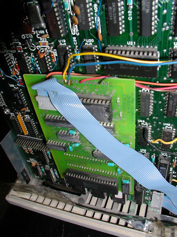 ![]() It appears that Roy Soltoff held onto the unit after testing was completed and kept it for every-day use or testing purposes. This photo shows his work to up the RAM by bridging with an Alpha Technology RAM board (see below). At some point Roy attached a "128K RAM" sticker to the front under the (disconnected) reset button. Click image for larger view.
