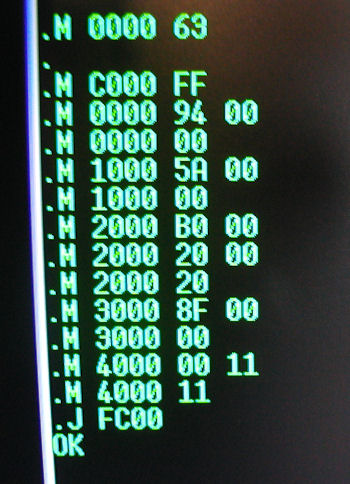 ![]() And here is a view of the ACIA monitor. I ran a few simple memory tests to verify that 16K was detected and available to the computer. I then jumped to FC00 to start VTL-2 BASIC to make sure that still worked.