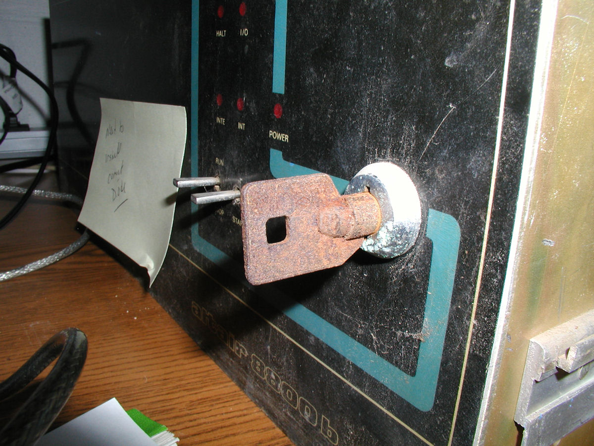 With these two hacks I can boot BASIC on this computer. Next: Turns out the diode in the front panel was OK after all. My guess is that I have to locate bad solder joints or repair the switch, or clean it. I lost the diode (fling! - oops!)...waiting on a replacement in the mail. After I finish the front panel repairs I will clean everything nice including CLR-ing the turnkey or maybe repaint it silver. Reply |