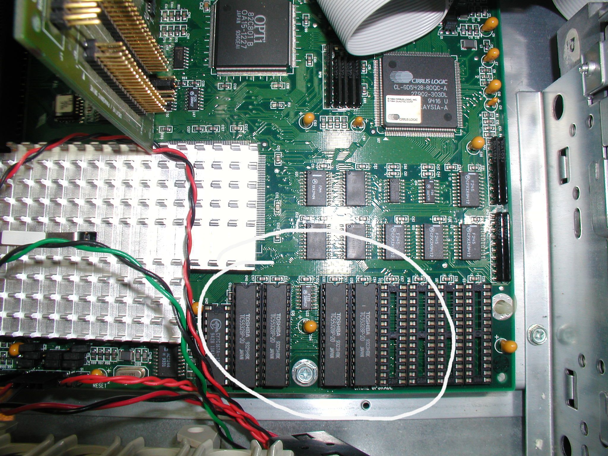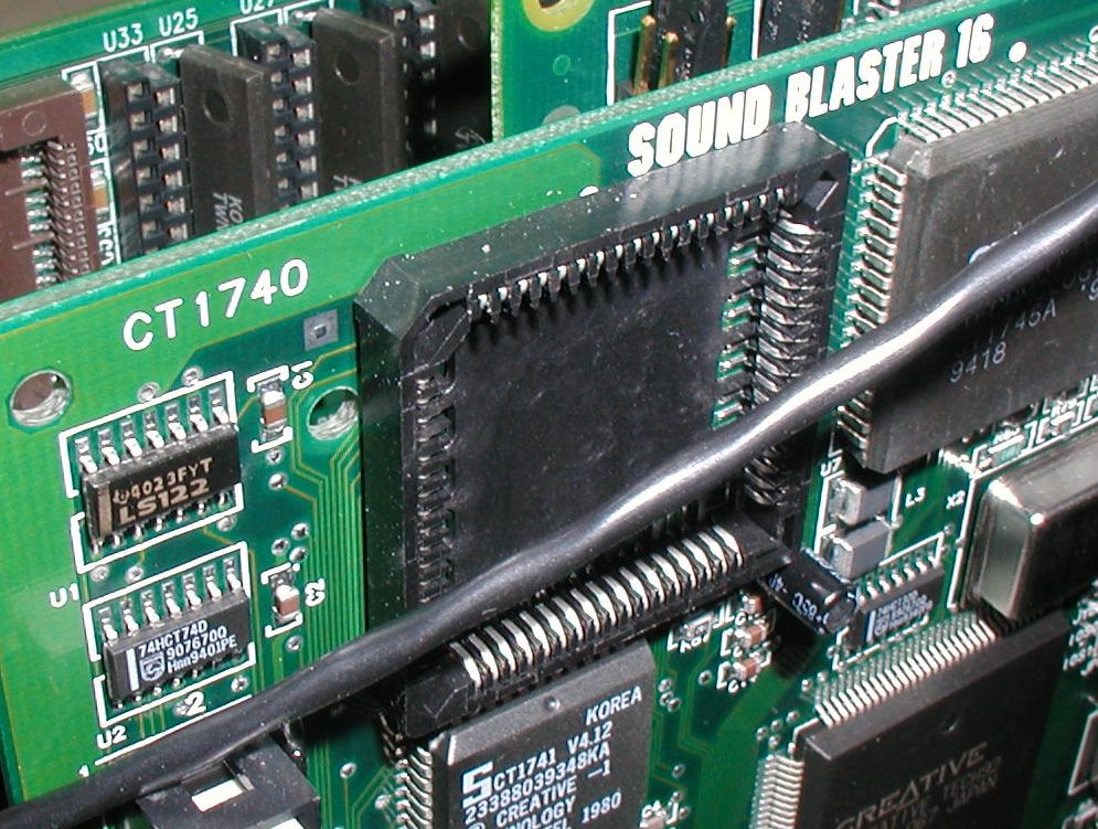 ![]() I removed the less-capable Sound Blaster CT1740 because it was missing the CSP/ASP chip (see empty socket in this image). Click image for larger view.