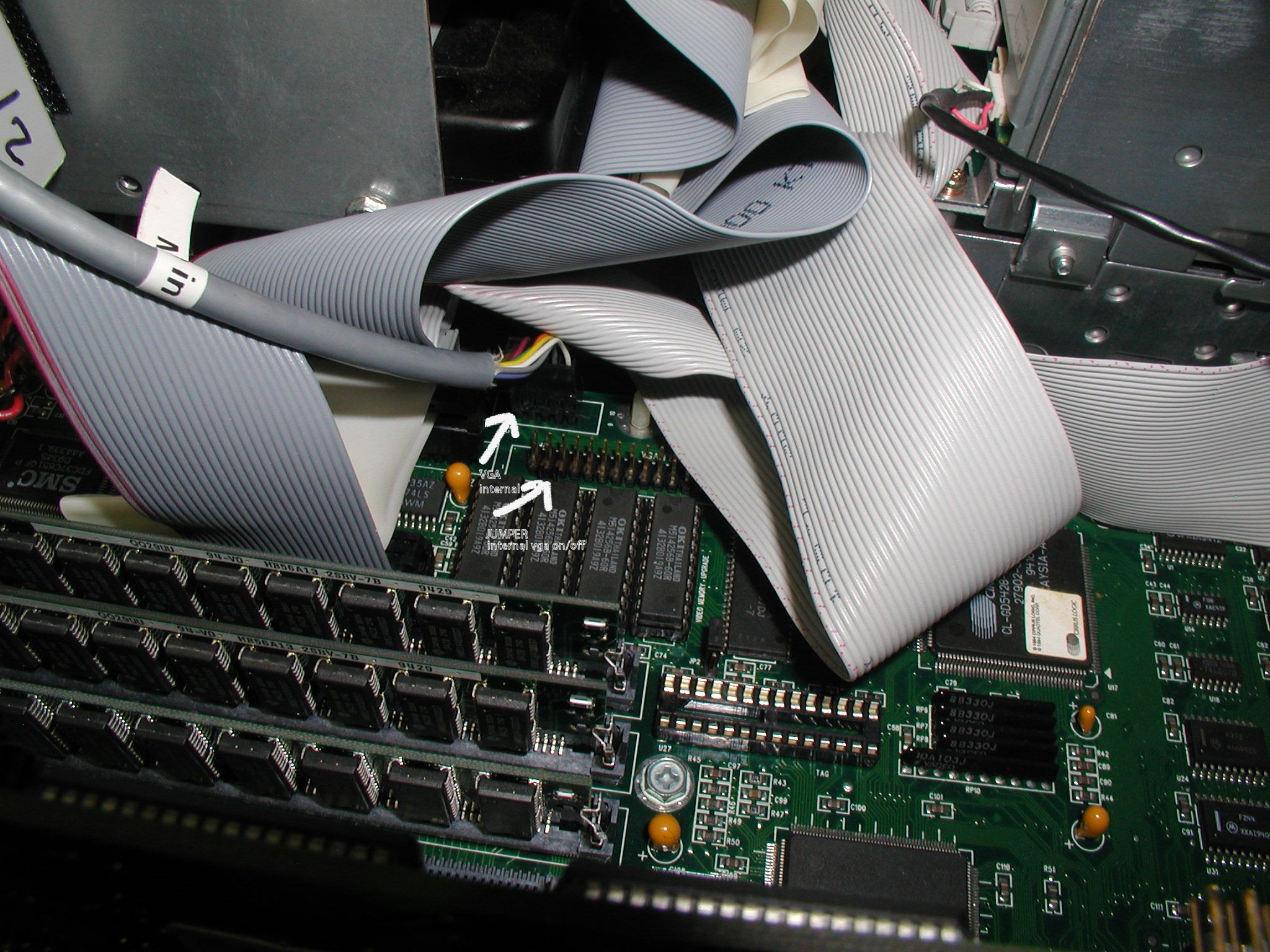 ![]() The 466V motherboard has an internal VGA port, which is not present on the XPS version. This image shows the internal port and the jumper one has to remove in order to use a video card instead. Click image for larger view.