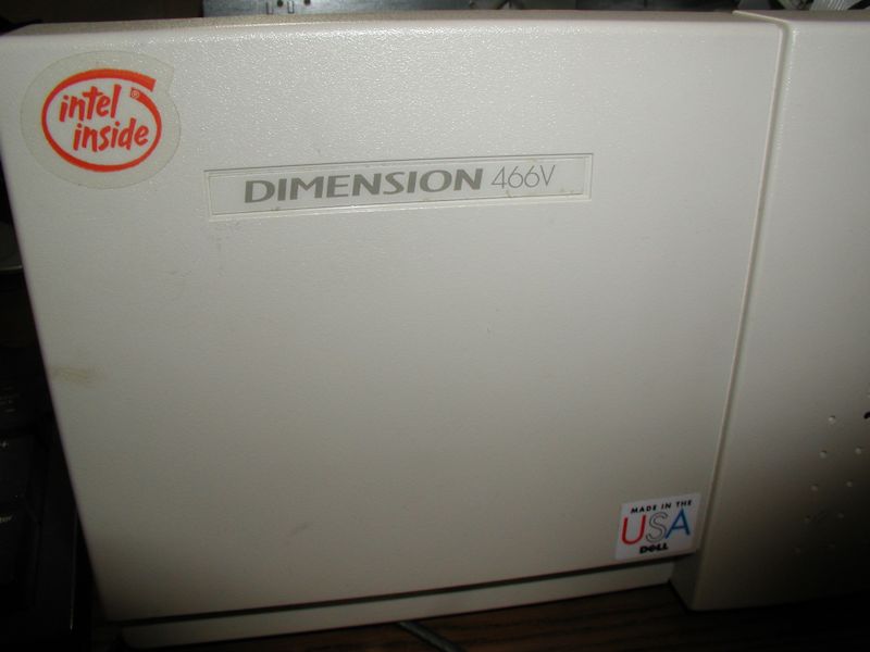 ![]() The motherboard of the XPS referred to above died. I found a "non XPS" version of the Dimension 466V to use as the source of a replacement motherboard. It cane with a 3.5 drive and sound blaster card and a working mother board. The vanilla 466V is not exactly the same as the XPS 466V but with a few changes I was able to upgrade it to an "XPS". Compare with above picture of the front panel label. Click image for larger view.