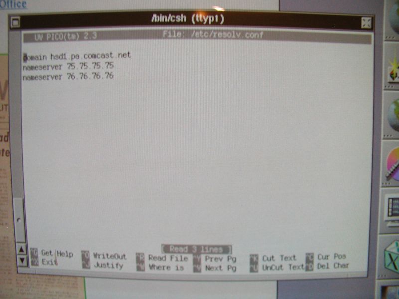 Very simple process to connect to the WWW from my home network. I set an internal IP address, updated /etc/resolv.conf to add my local ISP domain (hsd1.pa.comcast.net) and the DNS IP addresses Comcast uses by default. I added my router IP and made up an IP address within my home subnet (10.1.10.136) Just like any other networked PC, basically. There is a good walkthrough from nextcomputers.org that I downloaded and put on my web site, which I mirror here. Reply |