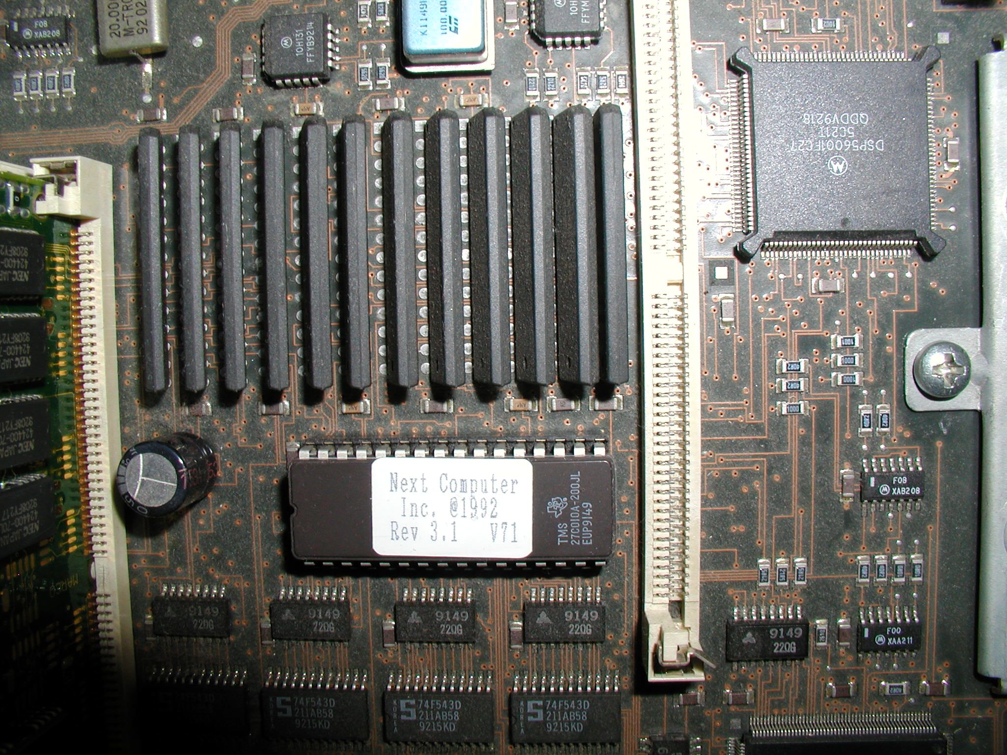 ![]() Close-up of ROM section of motherboard. Rev 3.1 v 71. Click image for larger view including center of motherboard where ROM is located.