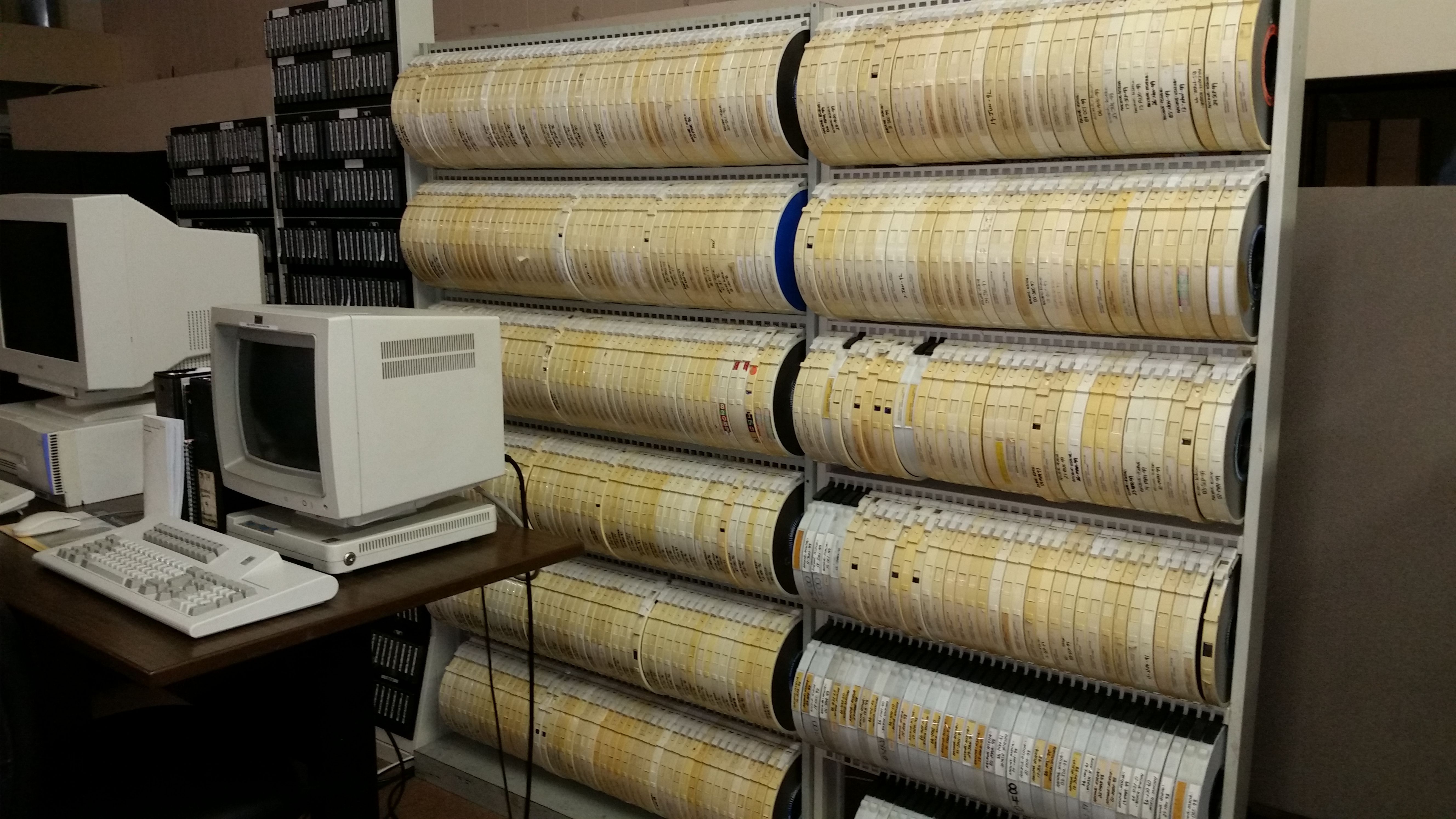 ![]() A wall array of 9 track tapes. Click image for larger view.