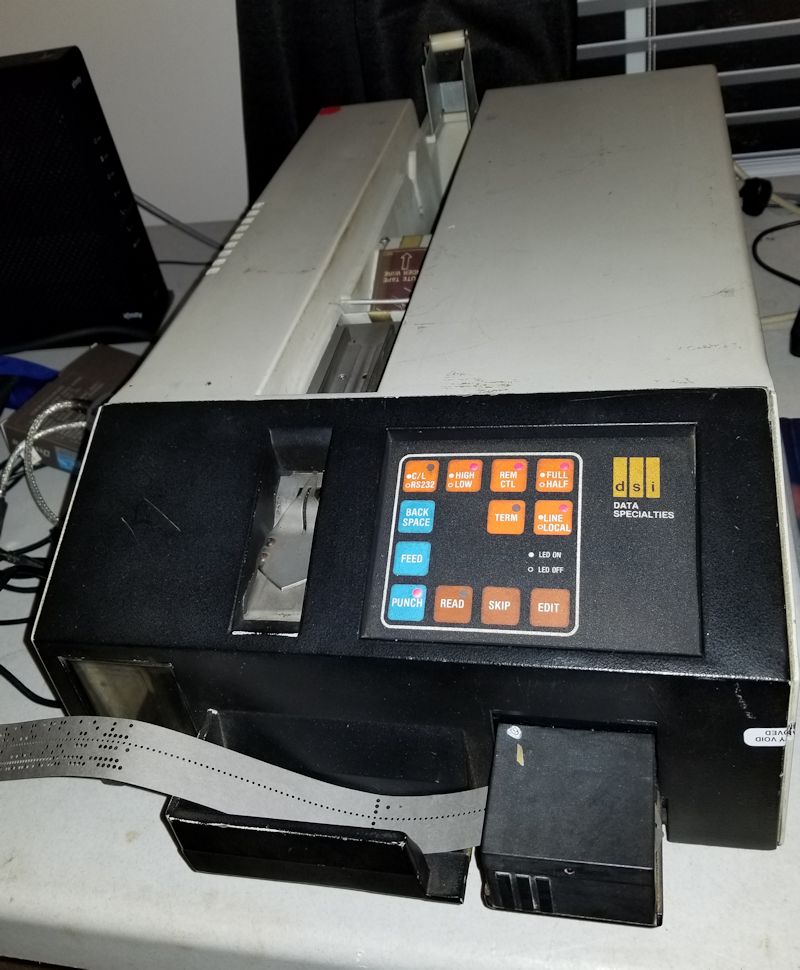 ![]() DSI NC 2400 papertape reader and punch. Click image for larger view.