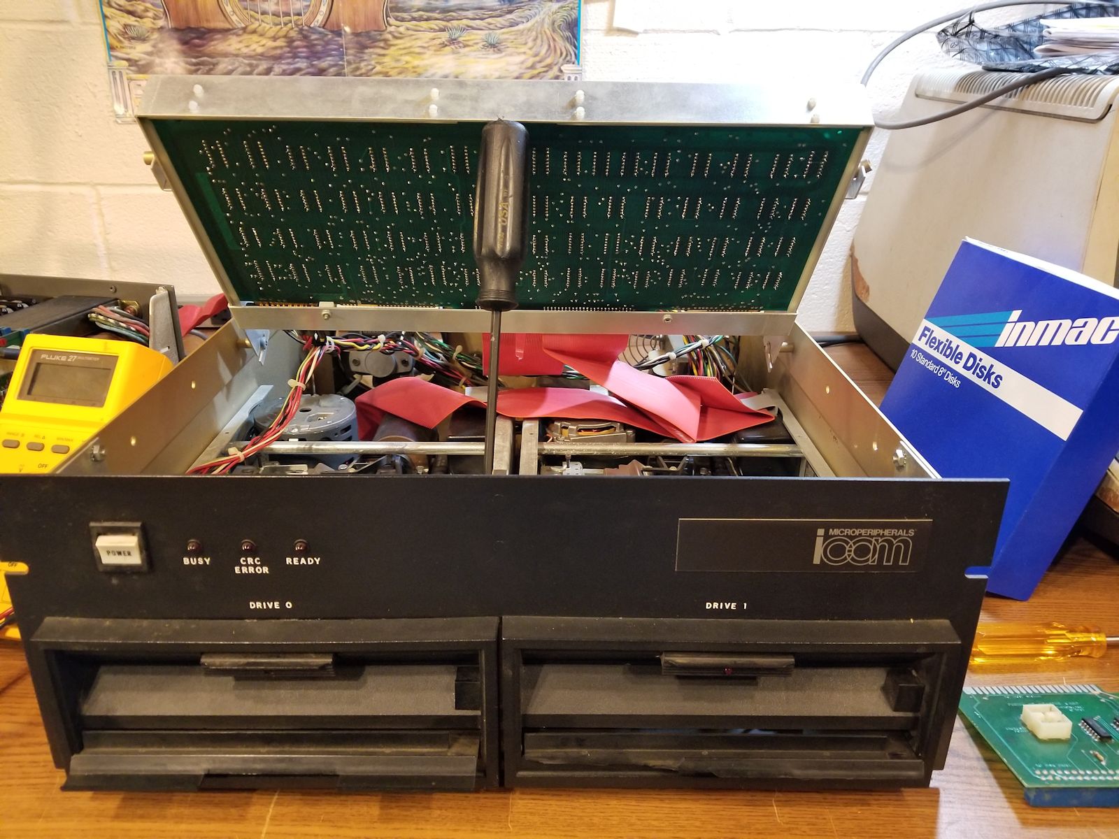 ![]() Pictured is the test system set up to explore the functional status of this iCOM 3712-58 dual 8" drive. Click image for larger view.