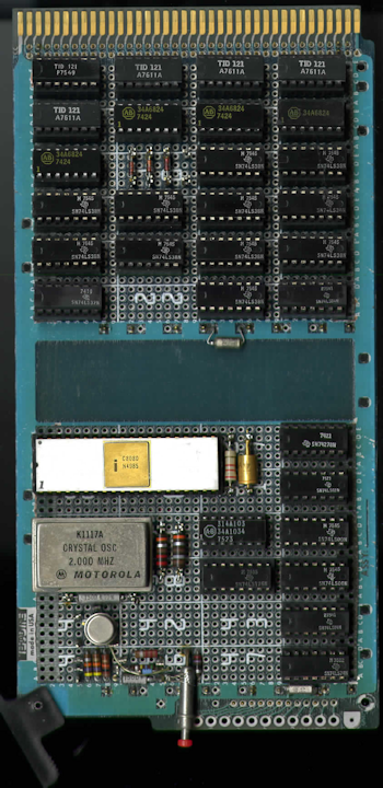 I like this system because it is a great example of the kinds of homebrew computers and prototypes mid-1970's engineers were building with the new microprocessors that became available then. In this case the TCC engineer chose the Intel 8080. The TCC 3700 was a full 8-bit "computer". The system was housed in a TeraDyne card rack supplied with individualized controller cards for CPU, ROM, Serial and other I/O and TTL logic. Little is known about TCC but it was not a large company. The computing unit was donated to Kennett Classic by Bob Martin who was given the TCC-3700 by the original engineer (name?), his friend, who created it.This computer appears to have been updated successively ~1974 through the later 1970s. It is not clear which IBM mini or mainframe systems the 3700 was designed to interface with. It is possible that this computer in its core was a general-purpose machine that was later adapted for use in an IBM environment. All to be determined. I need to pull the ROMs to get clues as to menus or commands that might reveal function. ![]() Here is a view of the CPU controller card. Note the CPU is an 8080 (not -A) thus it would have been manufactured some time during 1974 or early 1975. I have not been able to locate the exact date from the silkscreen. Click image for larger view.