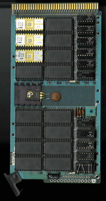 Click here to view other cards and photos of the 3700 including a newer 2708 ROM card, serial card and other I/O controllers that are part of this system. ![]() TCC-3700 ROM board. The ROM for the computer was stored on 3 1702A chips. Click image for larger view.