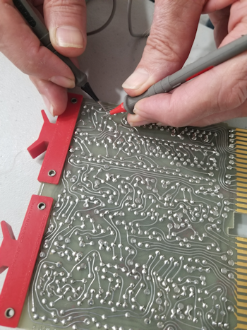 It's likely there are numerous faulty or marginal diodes and maybe some transitors that need to be replaced. Worst case, we'll improve the electrical state of the computer and perhaps fix the intermittant memory issues with a shotgun approach of going through all diodes on every FlipChip board. ![]() Backside of the same flipchip logic card.