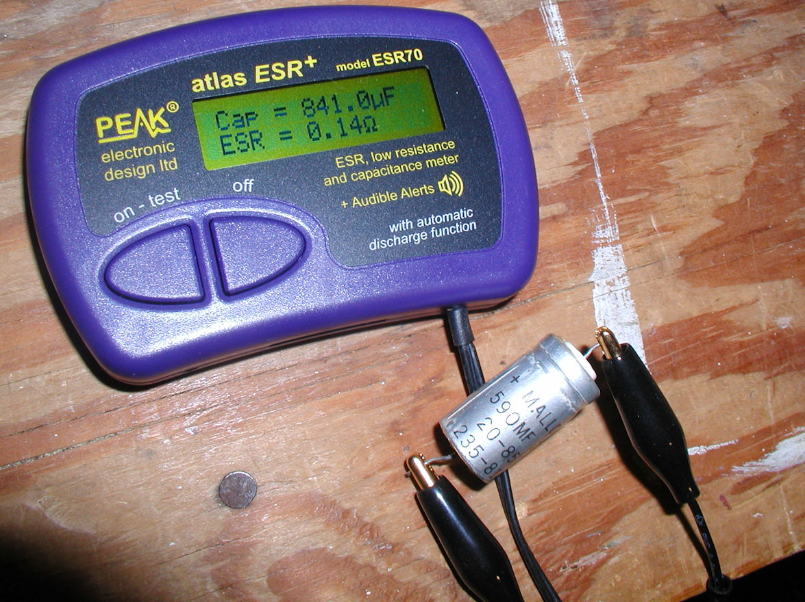 I removed the 590uF 20V cap from the 12v line of System 1 power supply and replaced. This was the solution. The voltage is still lower than 12v, but apparently it was not so much that the voltage was too low, but the 590uF cap was marginal. I bought a Peak ESR70+ to test for bad caps. Seems to work very well. Although the cap I removed was labeled 590uF / 20v, when I tested it I got 841uF and ESR - .13ohms. See readout Am I correct to interpret this to mean: 1) They labeled the cap 590 but it was really a ~850uF to start with OR it deteriorated somehow to add MORE capacitance over time? 2) Assuming you have a new 850uF cap, an ESR of .13ohms is too high/marginally leaky 3) If it was really a 590uF an ESR = .13ohms would have been "more OK". I posted this question to midatlanticretro so see what the experts there might think.... whatever, the new caps work. Reply |