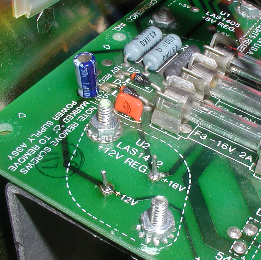 ![]() It's too large for the space, but it's the right part for the job...a new cap in board position C1. Click image for larger view.