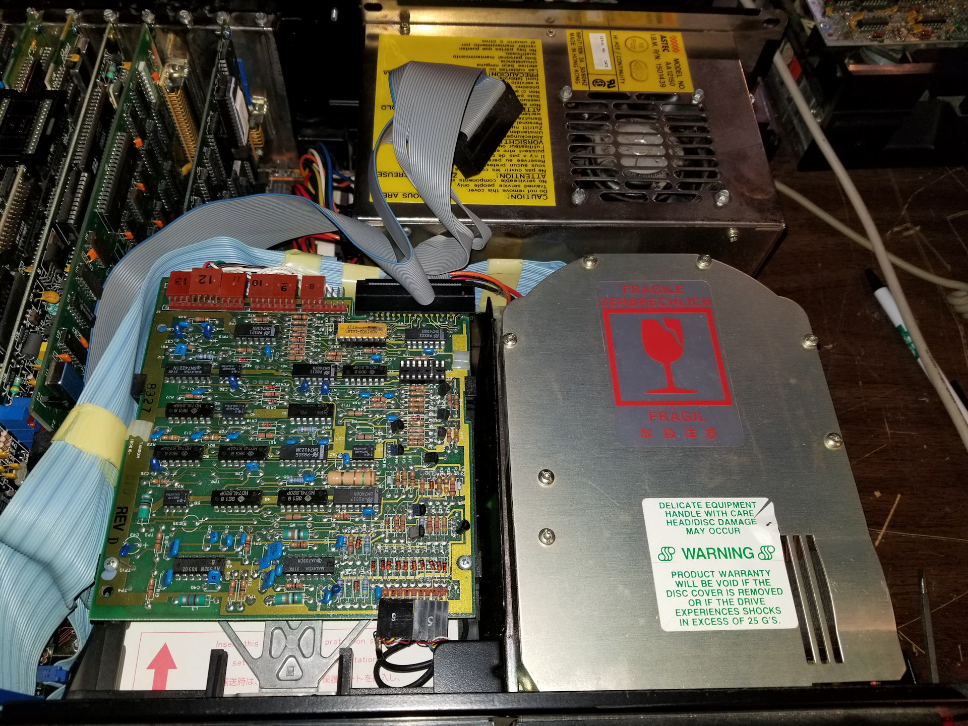 The controller in the back is the 3278 network connector card. The next controller is a now fully-populated and properly configured Maximizer RAM/serial/parallel card. The cards joined by a top connector is a dual display card, capable of EGA and MGA graphics. The next two cards are stock hard disk and fixed (360K) 5 1/4" disk controllers. The small controler behind the Tandon 100-2A drive is the enhanced keyboard controller used when in 3270 emulation mode. ![]() Tandon 100-2A FD and Seagate 10Mb HD drives. The analog controller of the Tandon diskette drive was replaced as was the FD controller installed in the backplane. Click image for larger view.