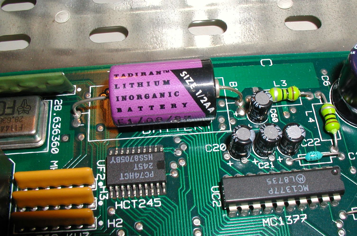 ![]() View of the burnt components on the DMB 6400 controller card. Click image for view of entire card cage.