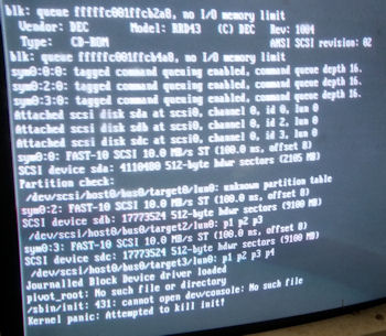 ![]() So far the system powers up, initializes and then fails to load an operating system. This machine would have been shipped with OpenVMS, Digital UNIX or Windows NT. Click image to see larger view.