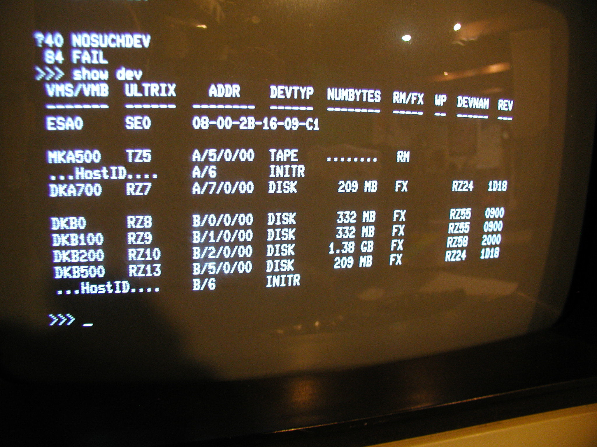 ![]() So far I have not done much other than boot the system from the console and run a SHOW DEV command to see what the VMS/VMB assignments are. The system is runnin">... [ read more ]