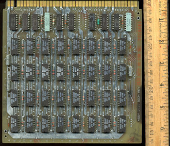 Actual RAM boards are too large for my flat-bed scanner, so I took two scans of each RAM board imaged. I also have a third similar board, that's the source of the close up RAM chip view. Each board is 128K I believe, 16-bit.