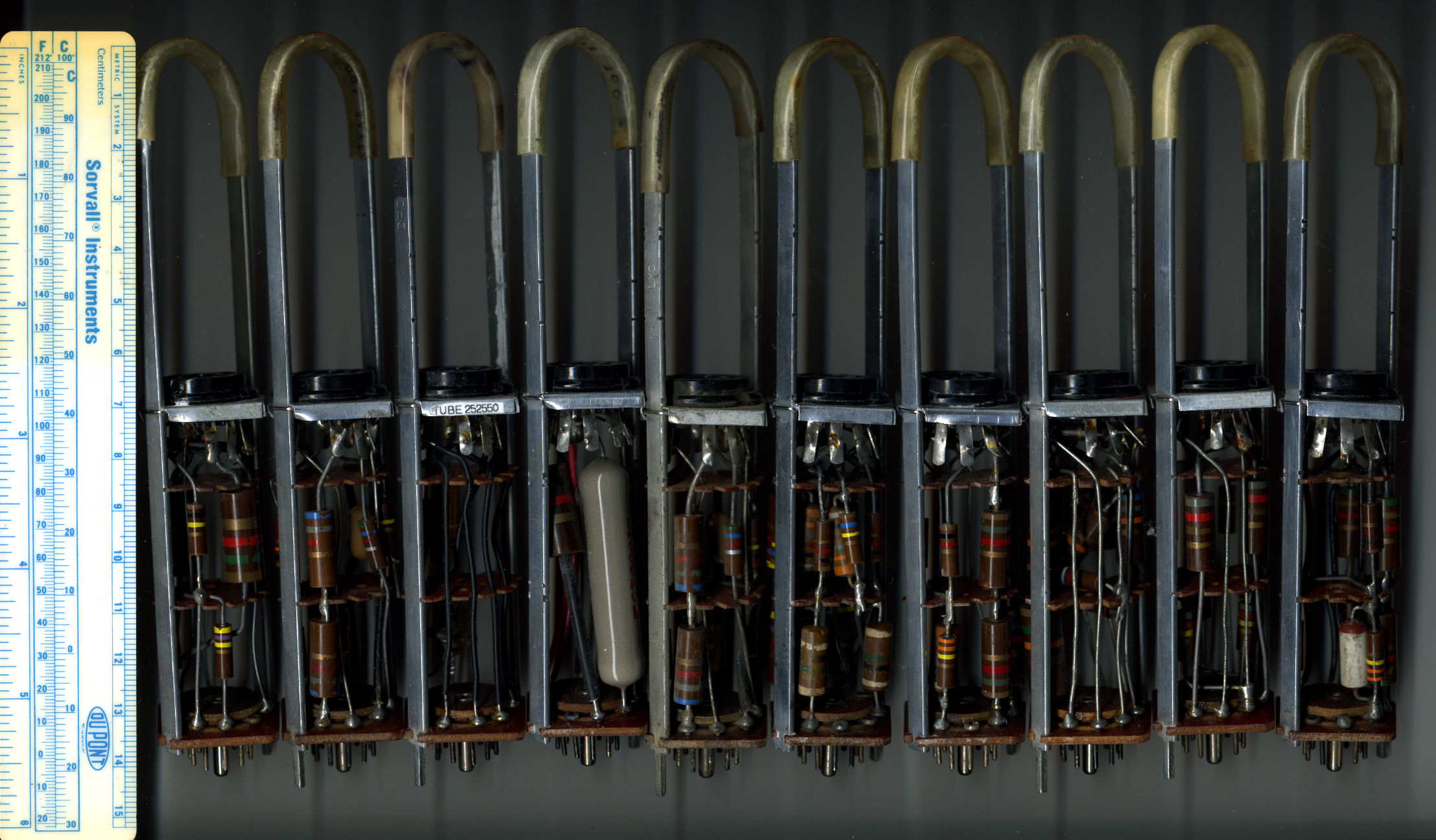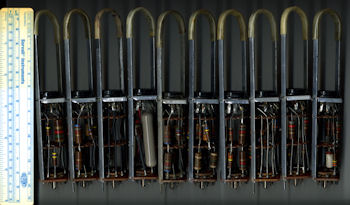 ![]() Photo of the 10 tube units with NO tubes installed. From left to right: AM-320 / IN-501 / (no marking) / AM-3(?)23 / IN-501 / TR-307 / CF-311 / AM-306 / AM-312 / IN-307. Click for larger view