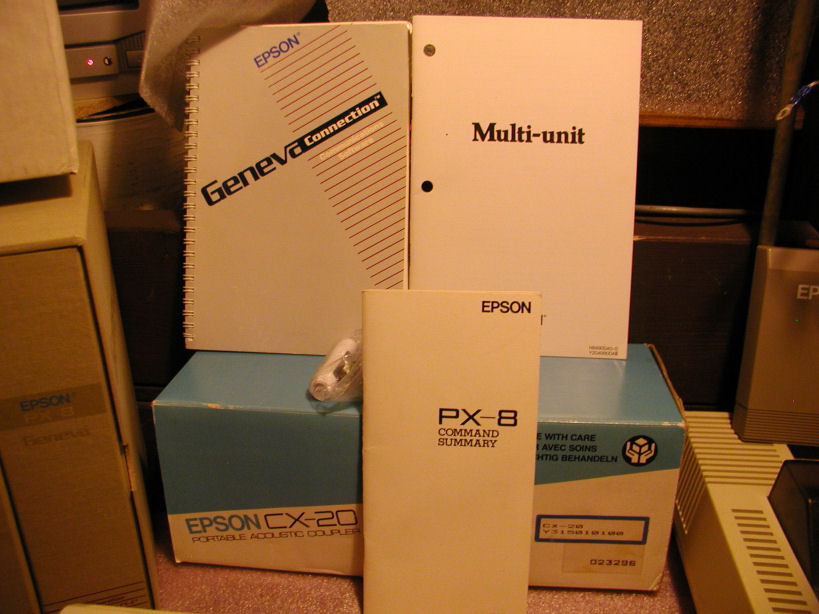 Epson Geneva PX-8by billdeg Total messages in this thread: 3 Updated: [ Epson PF-10 Disk Drive ] 09/24/2012 The Epson Geneva PX-8 was an early LCD laptop from Epson. It ran CP/M and used a Z-80 processor. The standard storage was a mini cassette, but an external 3.5" disk drive was available. I have done some preliminary testing of this system, the LCD is a little weak. Fortunately I have a replacement display. I have the complete documentation and extra parts as well as the complete system. In addition to the PX-8 system I have a CX-80 Acoustic Coupler modem, a PF-10 external 3.5" disk drive, and Dbase II, The "Travelers Pack", and the Epson Software Libarary software. UPDATE: Looking for the utility disk that came with the PF-10 disk drive.">... [ read more ] |