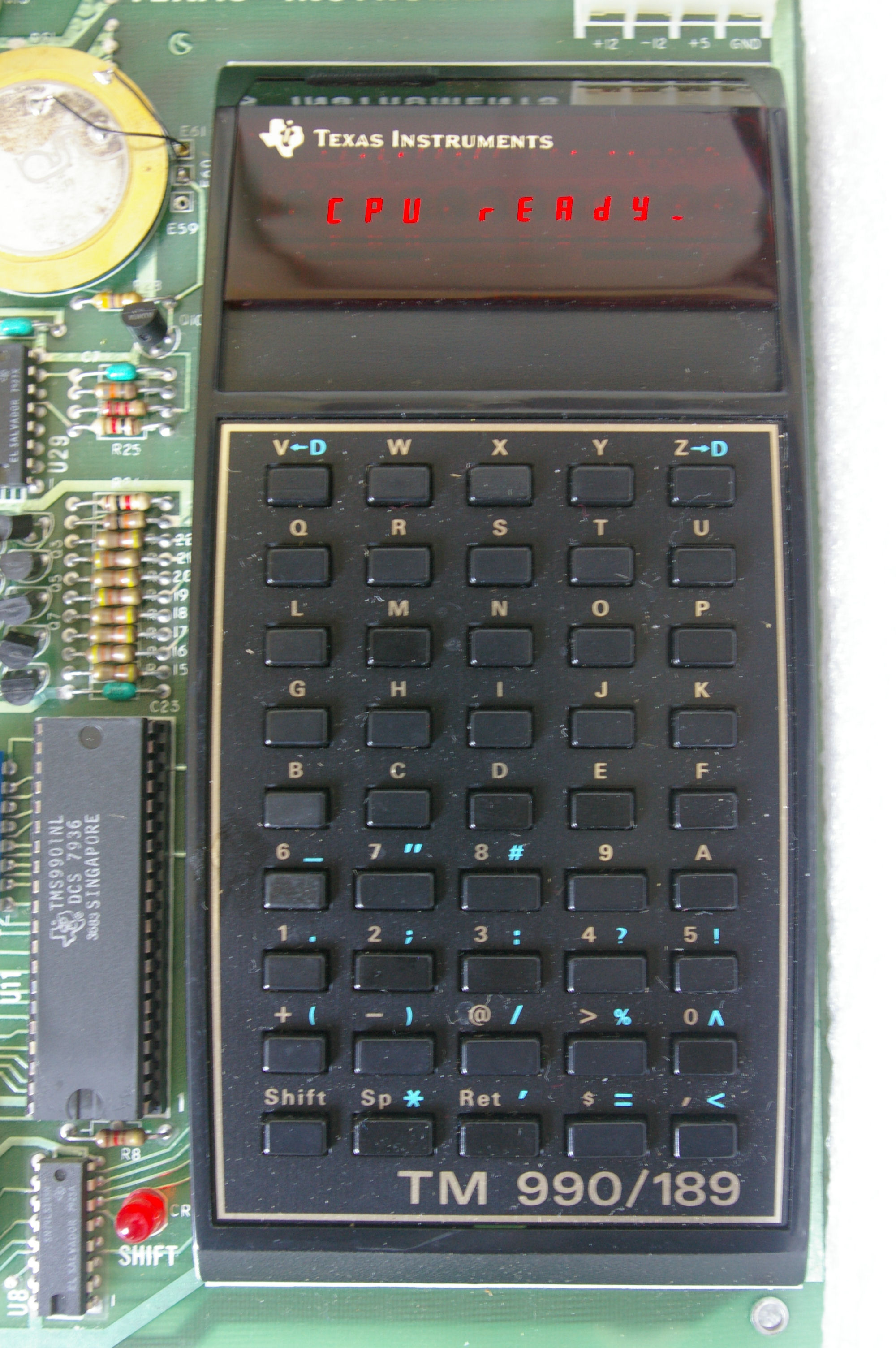 ![]() The TM990/189 looks like a TI 59 calculator stuck on a large computer board. Click image for larger version.