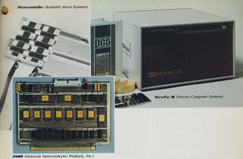 ![]() More 1975 microcomputing devices: The Microcontroller (Scientific Micro Systems), the M6800 (Motorola), and the MicroPac 80 microcomputer (Process Computer Systems)