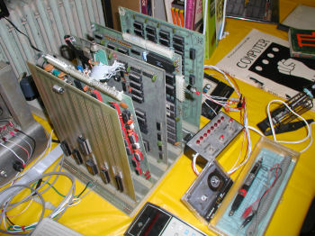 Vintage Computer Festival East 6.0by billdeg Total messages in this thread: 1 Pictures from the Vintage Computer Festival East 6.0 held September 12 and 13th at the Info Age Science Center in Wall, NJ USA William (Bill)Dromgoole's "..Ohio Scientific Superkit with a homebrewed power supply and no case, 25x25-character display, and external parallel ASCII keyboard. The Superkit consists of model 500a CPU board, model 480 backplane, and 440b video card. Also installed are a model 430b cassette I/O interface with D/A and A/D converters and model 420c memory cards. .." One of my favorite exhibits.