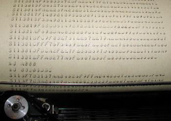The printout of a papertape listing on a Teletype ASR 33.